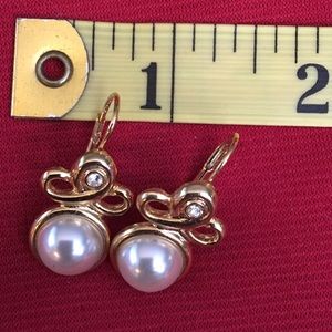 Petite and feminine vintage faux pearl and rhinestone goldstone pierced earrings.