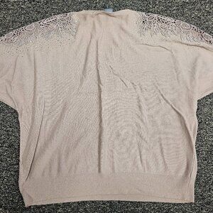 The LIV Milano Rhinestone Floral Embellished V-Neck Sweater- Good Condition with some piling. Color is dusty pink/ hint of purple