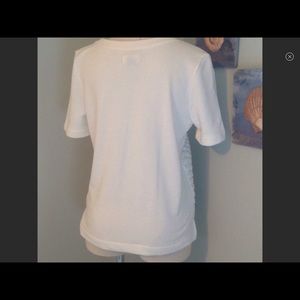 Very cute and different top with split sides. Material very similar to a sweatshirt material and very soft! Length is approx.23" long and the material is stretchy but not sure what type.
