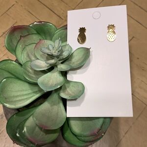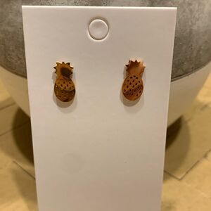 Super cute pineapple stud earrings. Gold tone. Funky & fun. Color may vary with lighting or device. Photos are a part of the description.