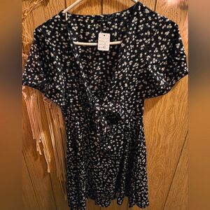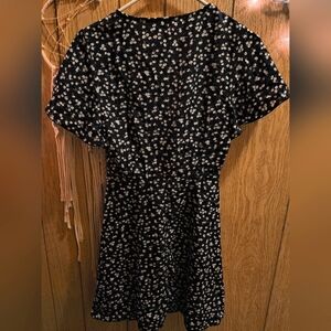 New without tags Size small but fits extra small Black in color Floral themed Shirt Sleeve Mini Sweetheart Dress Bow and Cut Out detail on the stomach area Contents: 100% polyester Smoke free home Top Seller Posh Ambassador 2 ⭐ Over 130+ available listings Bundle and Save West V Boutique™️, founded in 2022