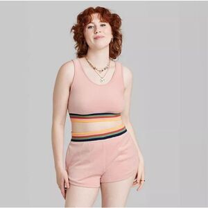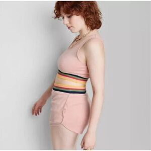 Solid-colored velour track shorts from Wild Fable™ with a contrasting striped waistband. Tailored in a mid-rise silhouette with regular fit and dolphin hems. Made of a cotton-blend fabric for all-day comfort. Side pockets and pull-on waist add functional touches.