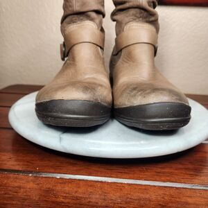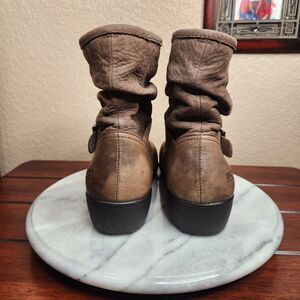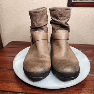 BOGS Cassie Low Rain Boots Size 7 Waterproof Leather Buckle Slouchy Taupe Brown