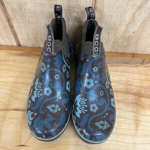 BOGS Women’s Mattie Corsage Blue Floral Waterproof Ankle Rain Boots Size 7