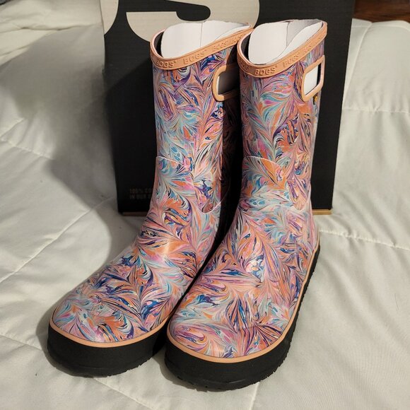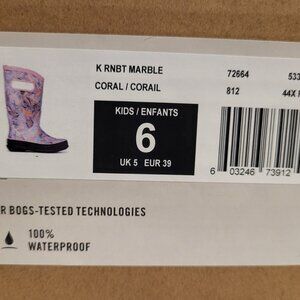 Kids size 6 Pink Marble rain boots. Mid calf. Never worn.