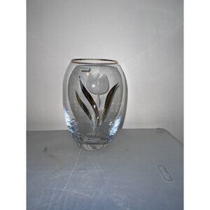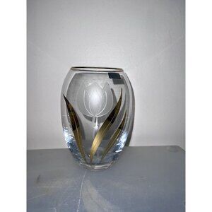BOHEMIA Hand Made Tulip Crystalex Glass Vase with Gold Trim