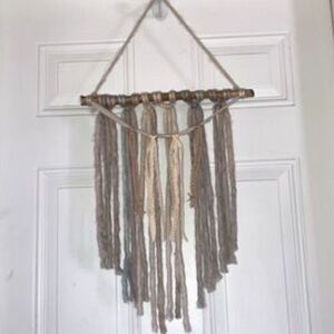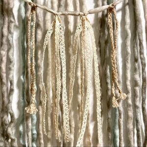 BOHEMIAN Boho Wall Art Natural WOOL Ribbon Twine Wall Hanging 14 x 27 inches