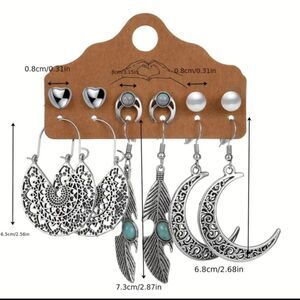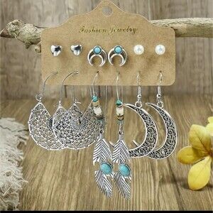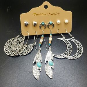 BOHEMIAN Crescent moon turquoise feather earring bundle set