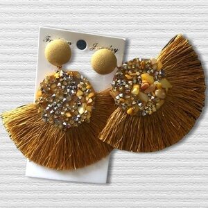 BOHEMIAN Fan Earrings Gold Tassel. NWT