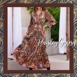 BOHEMIAN , RUFFLED, WESTERN MAXI DRESS