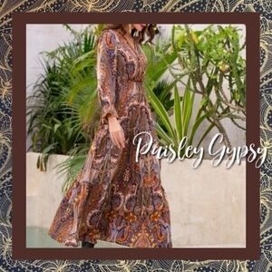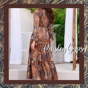 BOHEMIAN , RUFFLED, WESTERN MAXI DRESS