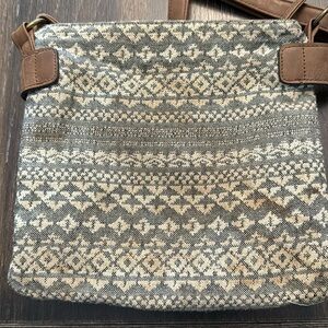 Fair condition. Has slight discoloration if you look hard enough. Adjustable strap. Stitching came loose on left side (see 2nd pic). Lace front pocket.