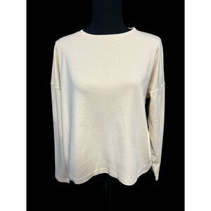 BOHME CREAM CREWNECK TOP BOX FIT LONG SLEEVE COTTON OVERSIZE RELAX FIT