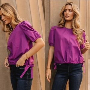 BOHME DAHLIA TOP IN MAGENTA SIZE XL Puff Sleeve Tie Waist