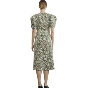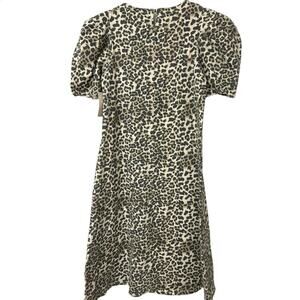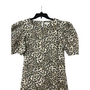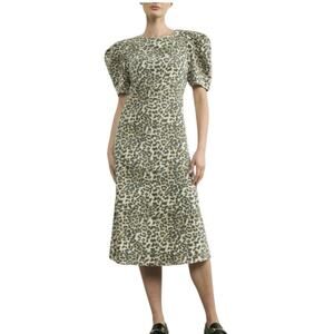 BOHME NWT Leopard Print Puff Sleeve Stretch Denim Midi Dress Size Xl