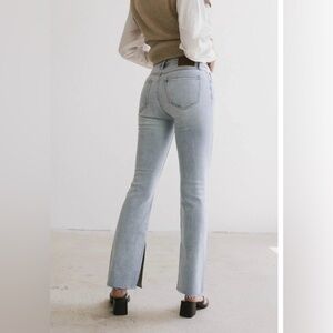 BOHME Ryan Bootcut Frayed Hem Split Hem Jeans in Light Wash