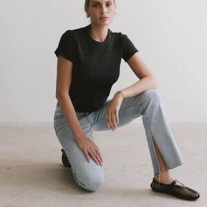 BOHME Ryan Bootcut Frayed Hem Split Hem Jeans in Light Wash Size 25