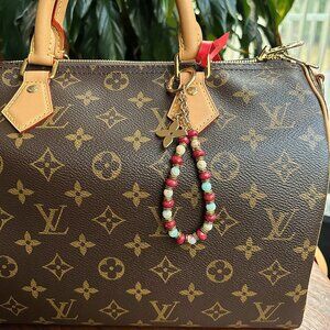 BOHO BEADED Bag Charm Dyed Quartzite and Calcite Beads Gold Tone