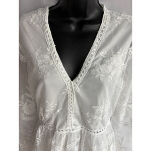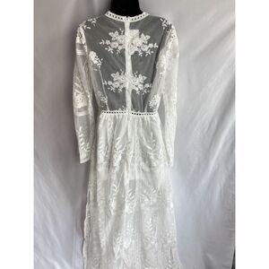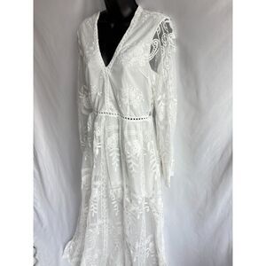 BOHO Beach Hut NWT Maxi White Embroidered Dress Lace Crochet Long Bohemian M