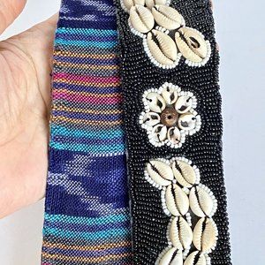 BOHO Black White Beaded Hippie Cowrie Shell & Coconut Buttons Women's Tied Belt