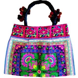 fashion Statement. From the other side of the world Chiang, Mai Thailand comes this beautiful authentic bohemian bag. BRAND NEW NEVER BEEN USED!!!!Embroidered front and back. This can be perfect as a backpack, travel bag, diaper etc anything you can think of. Beautiful colors and lots of space. BRAND ITS NOT ANTHROPOLOGIe only listed for item to be found