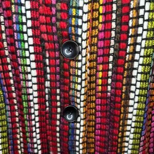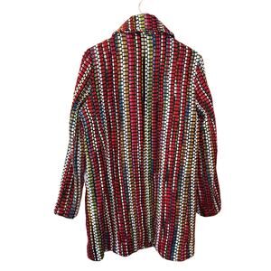 BOHO CHIC Multicolor Rainbow Yarn Embroidered Stripe Unlined Long Coat Size M