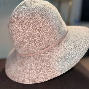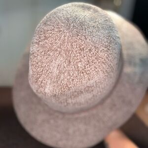 Gorgeous lightweight soft boho chic chenille fedora Panama hat in beige with brown leather accent. Super stylish!