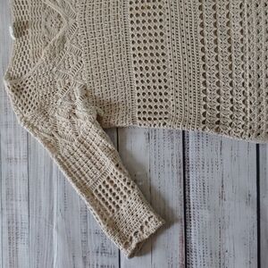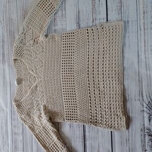 Adorable crochet sweater! Perfect summer layet or swim coverup. 3/4 length sleeves, hem falls at hips. Excellent condition. (S)