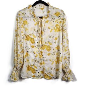 Style & Co. Mustard Yellow & White Floral Print Half Button Crew Neck