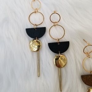 Boho dangling earrings with wood and circle details. Your choice of dark or light wood color Stud style Listing for 1 pair of earrings.