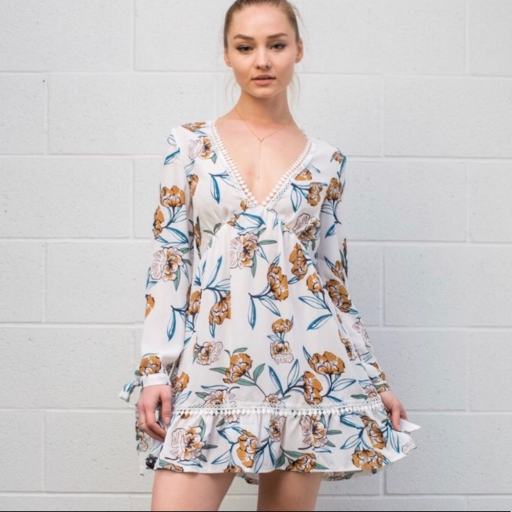 Lovely Flowy Light weight fabric with floral pattern and cute trim on neckline