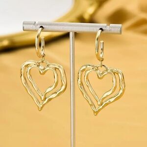 The hearts dangle from lightweight hooks, offering a graceful sway with every movement. Whether in a rustic, antique finish or polished metal tones, these earrings capture the essence of boho fashion, making them a perfect accessory for casual, festival-inspired, or eclectic outfits. Their romantic yet earthy vibe adds a touch of whimsy and charm to any ensemble.