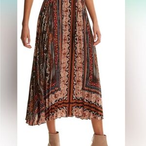 BOHO ELASTIC WAIST PLEATED MIDI SKIRT XS. NWOT