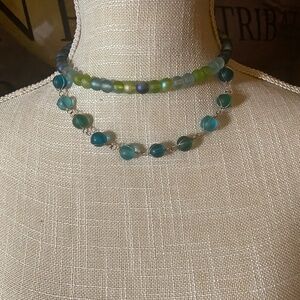 Boho Goddess Choker - is made of 2 strands of memory wire the top strand are small greenish glass beads, the lower strand are sets of turquoise glass beads this creates a double effect look. ***HANDMADE*** one of a kind