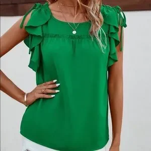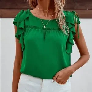 💚 BOHO GREEN RUFFLE TOP!