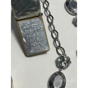 Some minor tarnishing on metal components; black cord necklace measures approximately 28 inches in length.