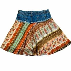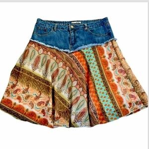 BOHO Mixed Media Denim Patchwork Midi Skirt Sz 11 by Star City #232A