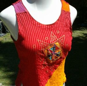 Colorful, festive, zbell, nacket, and elastic waist pants, One of a kind, worn once, in excellent used condition. Runs small, medium to large.