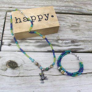 BOHO Peace Frog Necklace Bracelet Set Hand Made Be