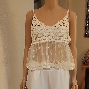 BOHO SUMMER SHEER CROCHET AND Lace TOP GUC SZ LG