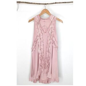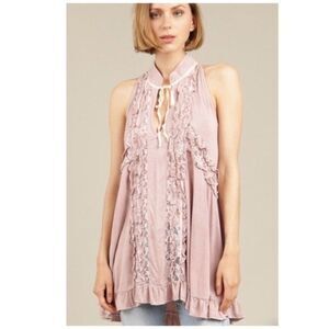 Lace Paneled Ruffle Detailed Sleeveless Swing Top In Pink