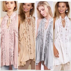 Lace Paneled Ruffle Detailed Sleeveless Swing Top