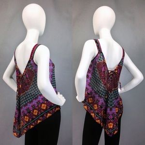 BOHO TOP Scarf Tank Top SHEER CHIFFON Geometric