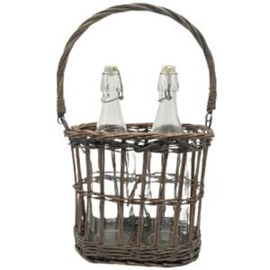 BOHO VINTAGE Two Swing Top Bottles in Wicker Carrier
