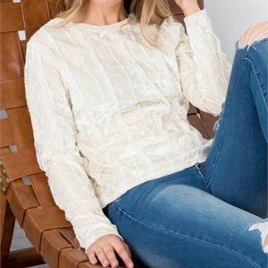 BOHO WOMENS CREAM VELVET LACE DETAIL BLOUSE TOP