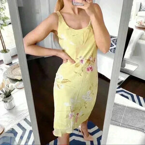 💛 BOHO YELLOW PINK FLORAL LOOSE MIDI DRESS!