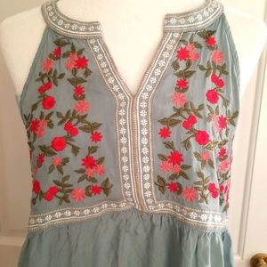 BOHO chic vintage look EMBROIDERED sleeveless top, size Medium