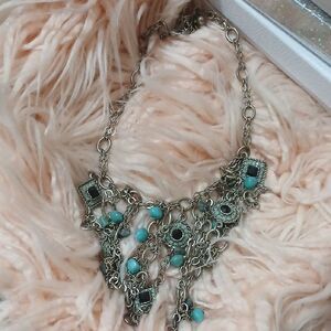 BOHO GYPSY Silver and Turquoise Necklace