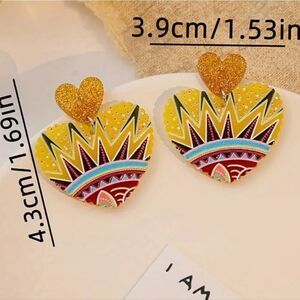 keywords: 1pc Unique Boho Acrylic Print Earrings - Vibrant Hawaiian-Inspired Jewelry Accessories for Women - Perfect Summer Vacation Gift, Daily Wear, and Tribal Style Statement Piece Lightweight Acrylic Dangling Unique Y2K Inspired fun funky whimsical kawaii goth punk earrings jewelry girls women's teenager's