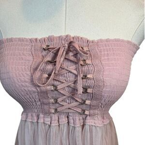 BOHO Y2K Coquette Baby Doll Tube Top Corset Top Tulle Flowy Pink Balletcore Fairy Romantic Whimsical Size XS